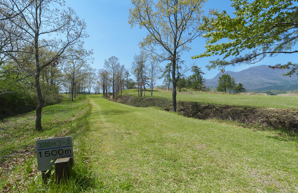 標高760mの高原にある、冷涼な気候と足に負担をかけない全面芝生が魅力のコース。絶景のなか小川のせせらぎや鳥のさえずりを聴きながら走ることができます。高低差が65mの起伏のあるコースなので、通常より身体に負荷をかけることで効果的なトレーニングを行うことも可能です。